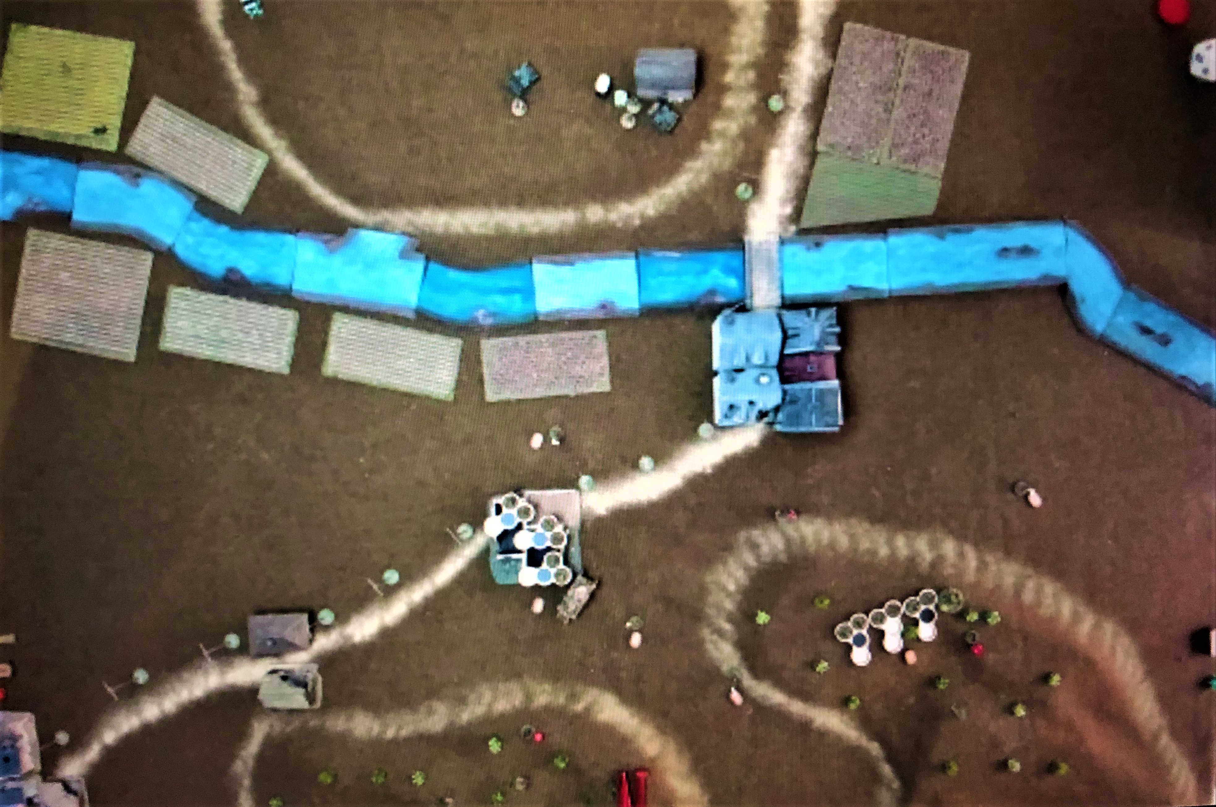 Close-up of Bobics's division on the Hungarian left; Hungarian right wing is in the distance (top left of picture). In the Night Interval, both sides will redeploy: Hungarians first, south of the Csörög (the stream in centre of picture) and around the Hétkápolna (the church top left), >6" from the Russians; then the Russians, north of the Csörög and >6" from the Hungarians. Bob is therefore trying to establish a line to keep my Russians beyond the Csörög so we don't constrict his redeployment and are ourselves forced to deploy at a distance from the next objectives.