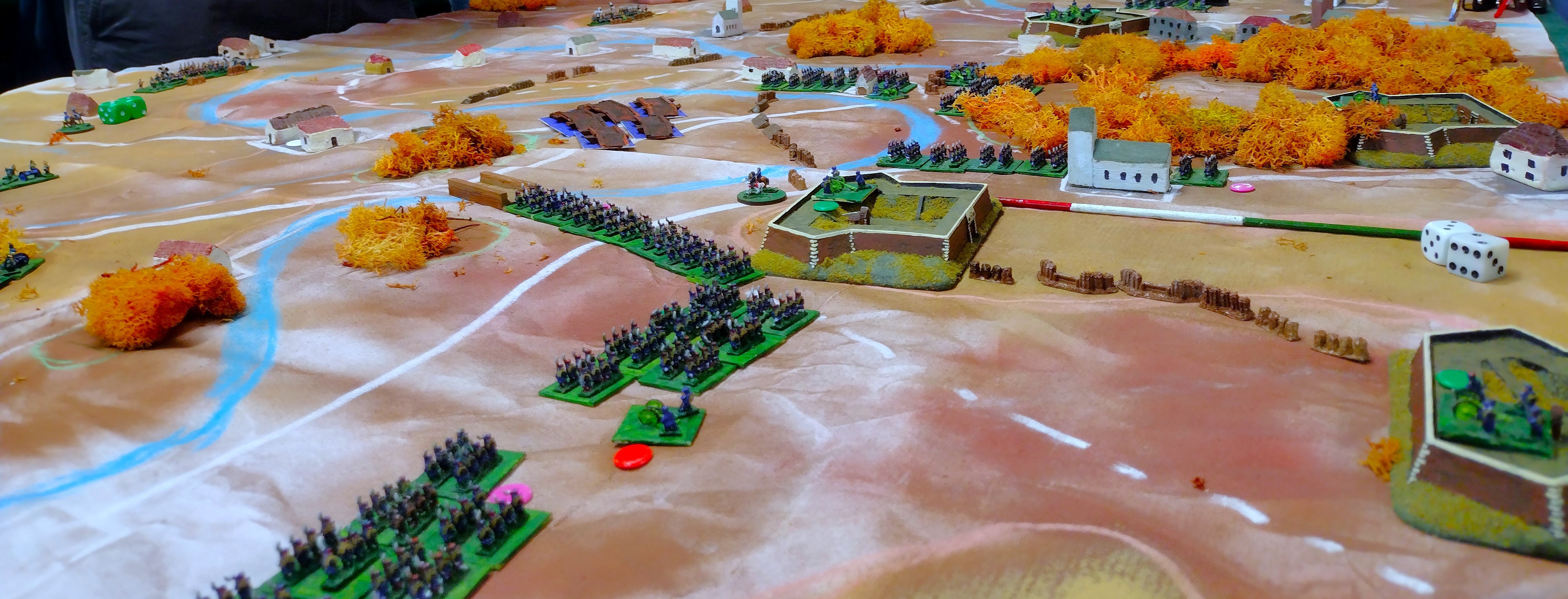 These games nicely illustrate how BBB can cope equally well with small actions of a few thousand, like Isandlwana, and with massive battles with 100,000+ men on the field, and can still resolve them in an afternoon. The scales on display varied as well, with 6mm, 10mm and 28mm forces in action. Lots of fine craftsmanship was on show: beautiful armies, gorgeous terrain, not to mention cleverly designed scenarios to create nail-biting finishes.
